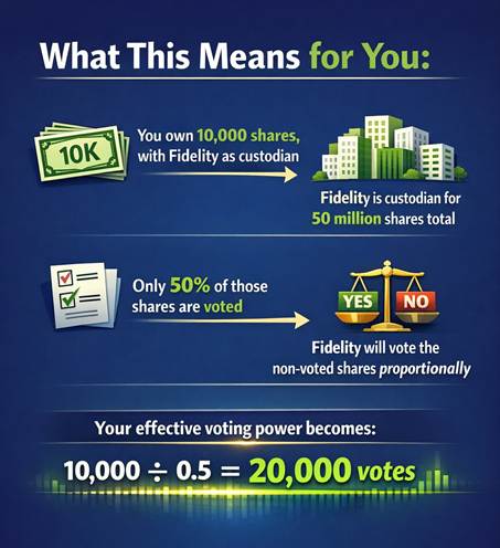 In many ways, this gives retail investors more proportional influence than large institutions, whose votes only count once for the shares they actually vote.